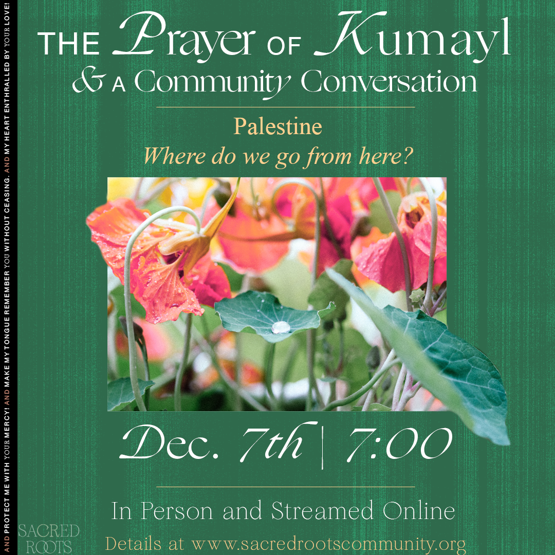 We invite you to join us in-person for an English engagement with Duʿāʾ Kumayl on the first Thursday of each month at Sacred Roots.