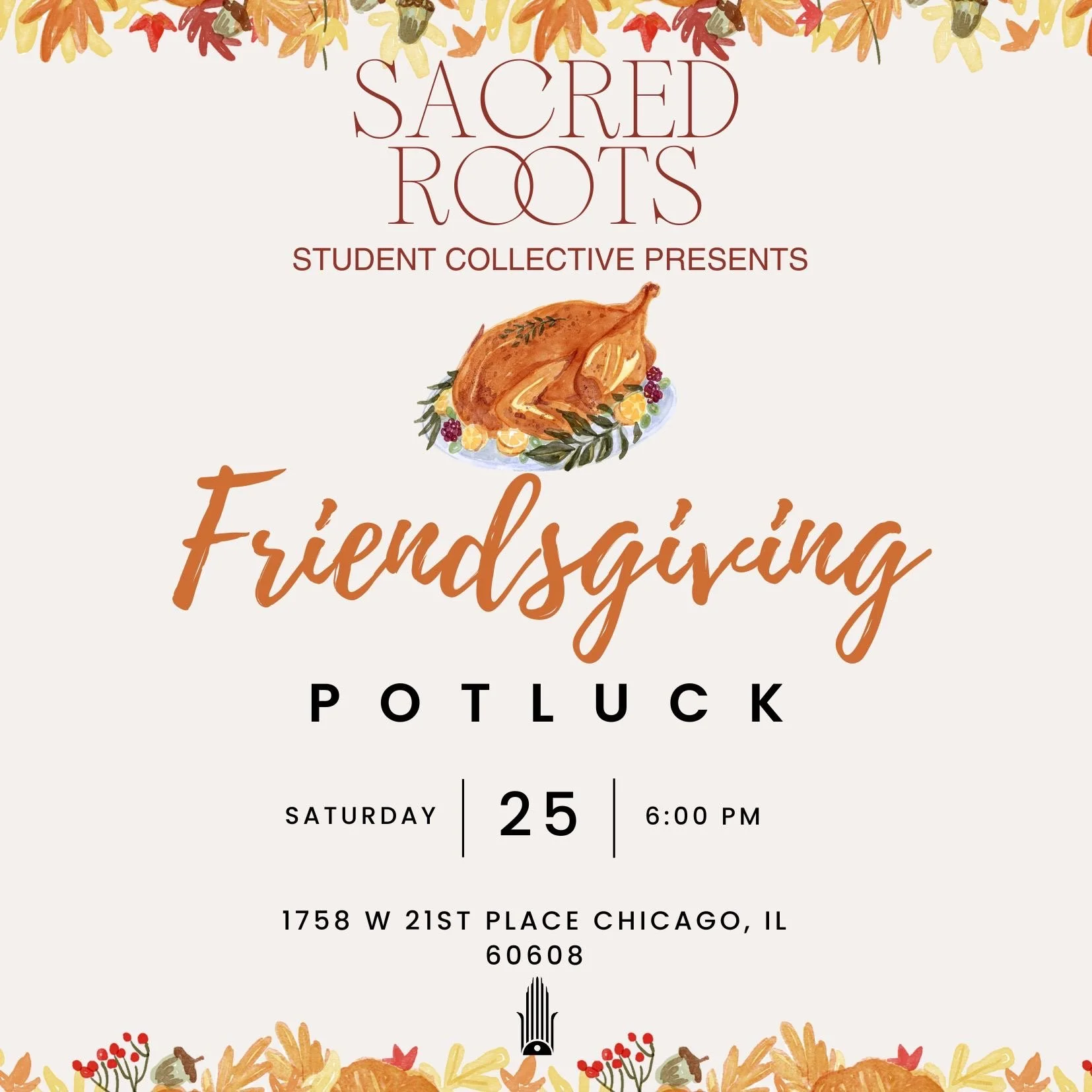 Sacred Roots Student Collective invites the community to a Friendsgiving Potluck on Saturday, November 25th at 6pm insha’Allah.