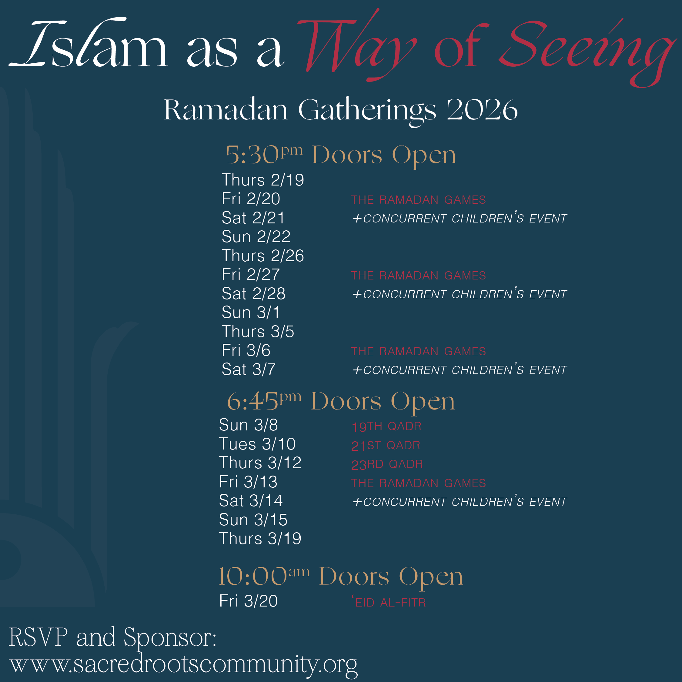 Join us for prayer, dinner (ifṭār), community, and reflections throughout Ramadan.